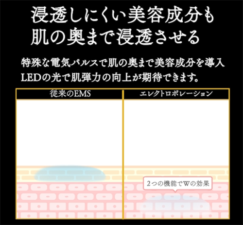 また、エレクトロポレーション技術によって、美容成分を肌の奥深くまで届けることが可能。